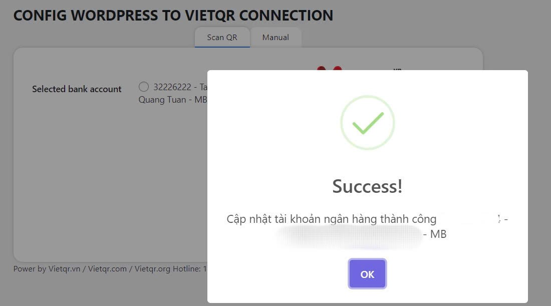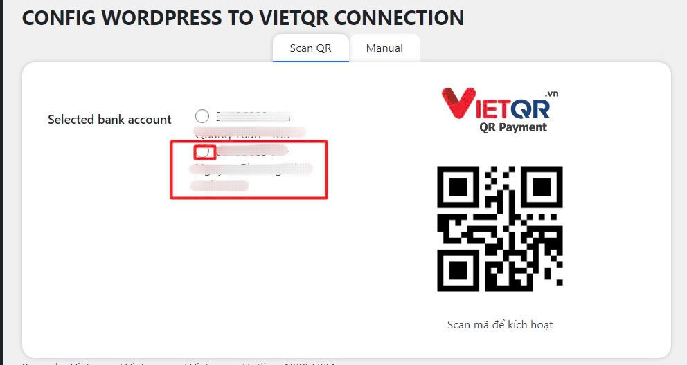 Sử dụng ứng dụng VietQR trên điện thoại để quét mã QR hiển thị ở trang trên.