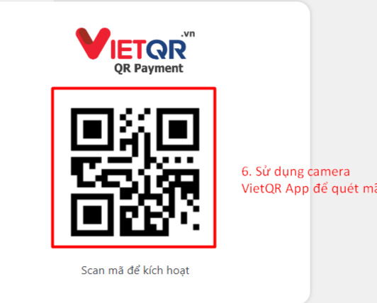 Sử dụng ứng dụng VietQR trên điện thoại để quét mã QR hiển thị ở trang trên.