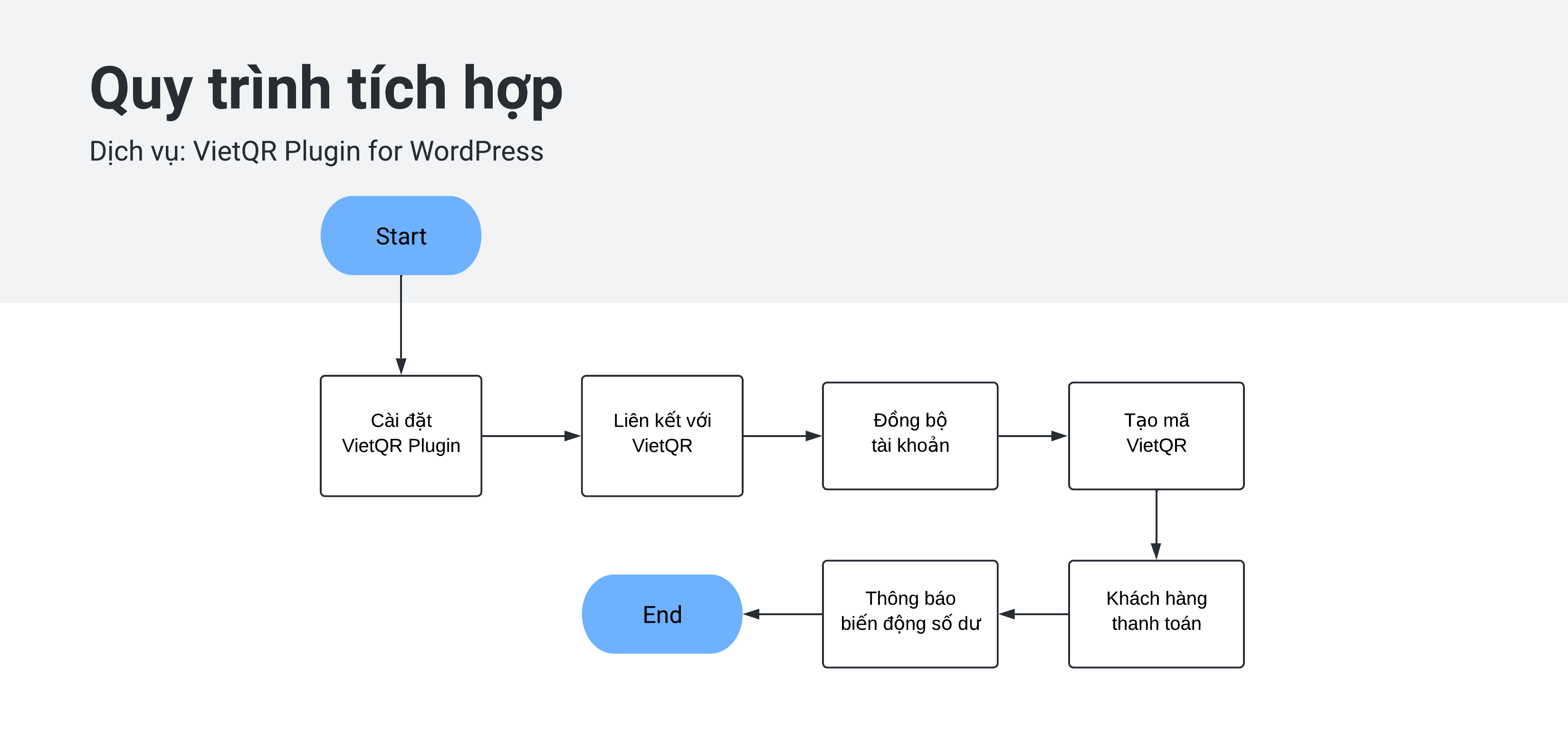 <figure><img src="https://content.gitbook.com/content/nFD4zf0rcZoWICdWxHJr/blobs/U8qlYq2nicBRoXBEJqwn/WPlugin%20-VN.png" alt=""><figcaption><p>Chỉ cần Cài đặt Plugin VietQR Wordpres miễn phí để nhận thanh toán và đối soát giao dịch</p></figcaption></figure>